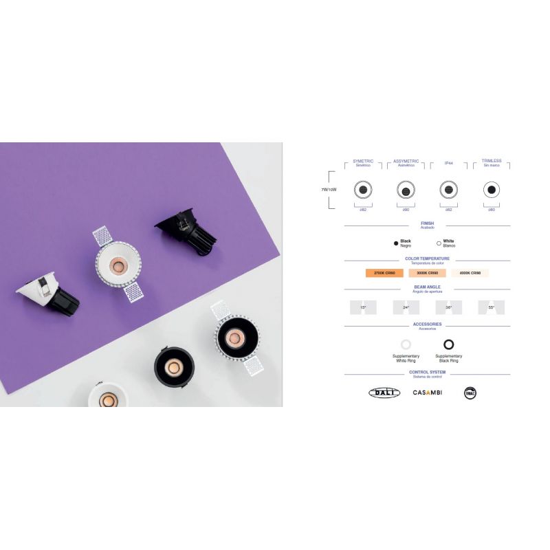 Informatii produs: | spot LED incastrabil TULIPA cu grad de protectie la umiditate de IP44, iluminare 24 grade + driver cu sistem de control Casambi inclus |