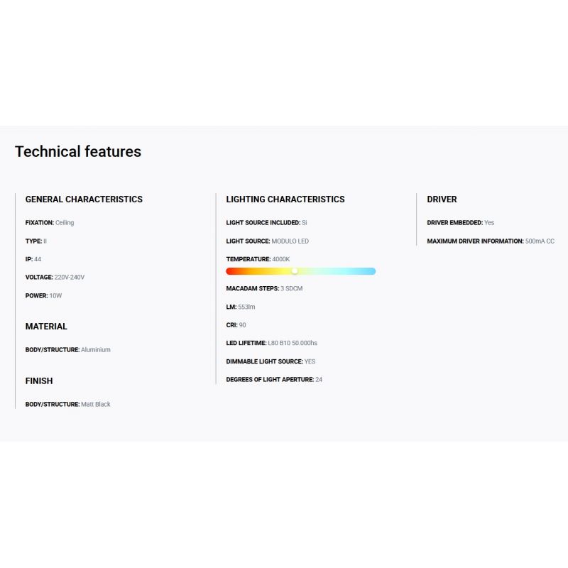 Putere | 10Watt modul LED dimabil incorporat, 553LM, 4000K, CRI 90 + driver inclus din pret |