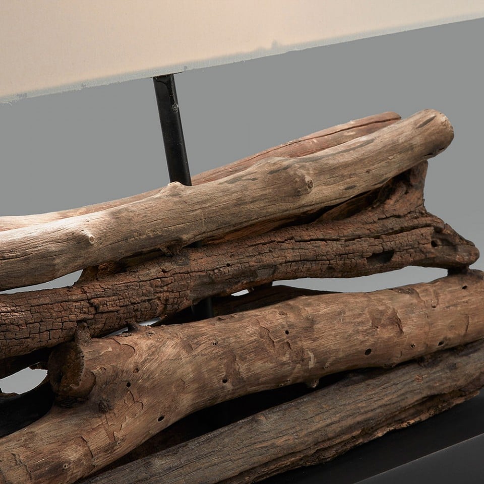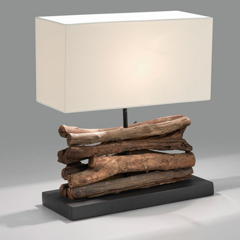 Veioza realizata din lemn tropical reciclat, cu abajur dreptunghiular captusit cu tesatura din bumbac alb, pentru a lasa lumina sa treaca mai bine si pentru o luminozitate sporita. Piesa de design perfecta pentru a adauga o nota calda in camera de zi.