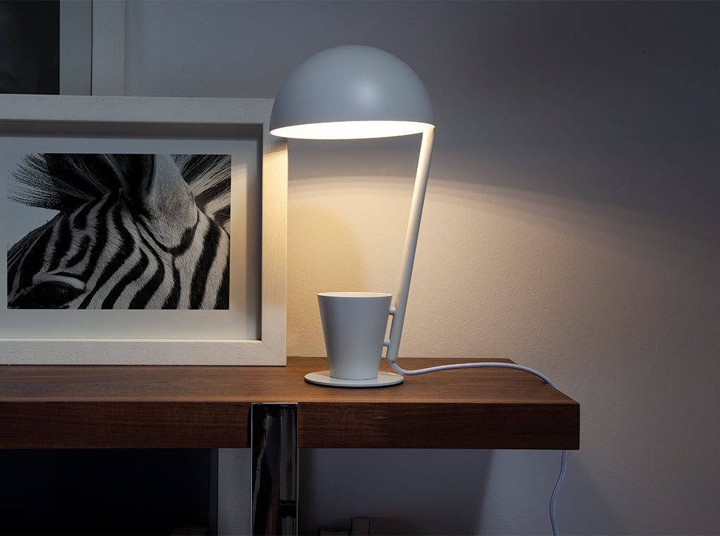 Veioza din Otel Alb cu Baza de Depozitare Angel Cerda
