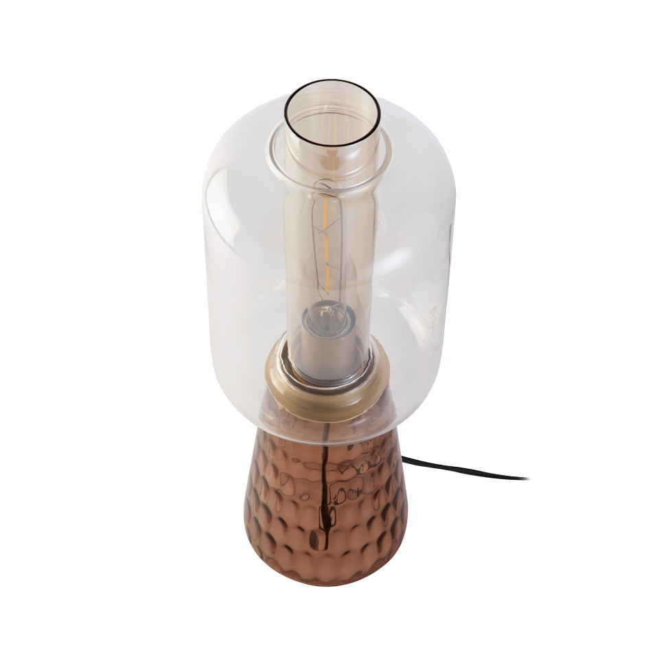 Aceasta lampa de masa din sticla fumurie este un produs modern si elegant, perfect pentru a aduce personalitate si caldura in orice camera. Designul sau industrial si finisajul combinat de cristale cu efect fumuriu ofera o nota moderna si diferita. Fabricata din materiale de cea mai inalta calitate, aceasta lampa este durabila si functionala. Dimensiunile sale o fac protagonistul principal al livingului tau, iar caracteristicile sale, cum ar fi becul LED neinclus si inlocuibil, fac din aceasta lampa o alegere excelenta pentru orice casa.