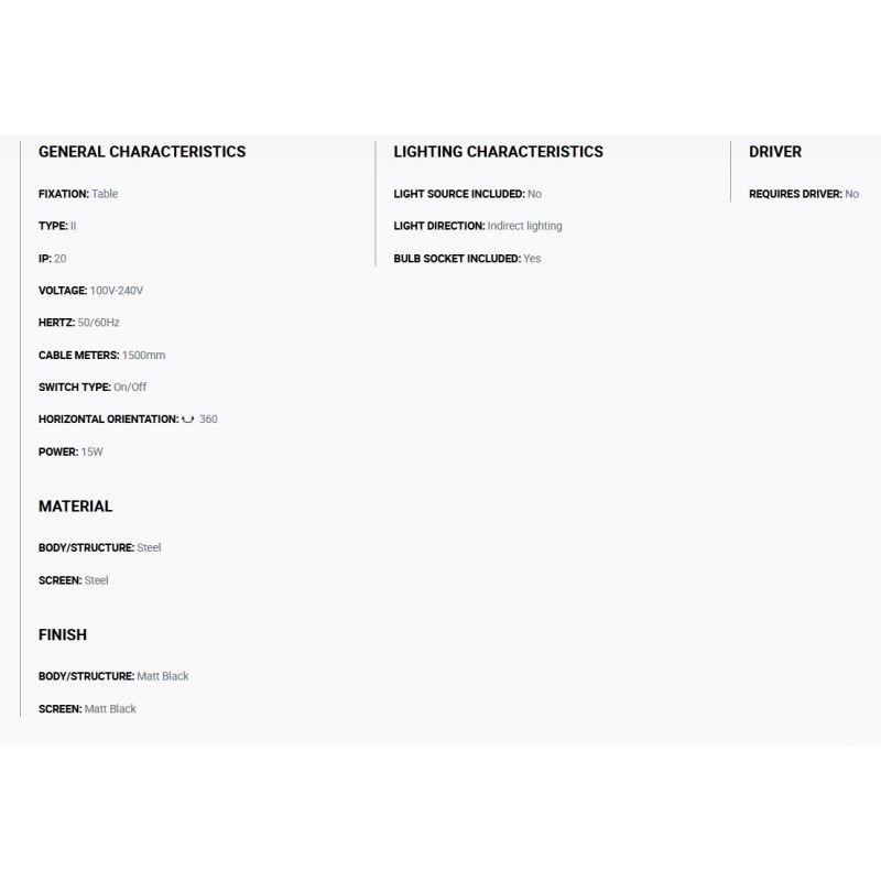 Materiale | metal finisaj negru mat cu abajur negru mat |