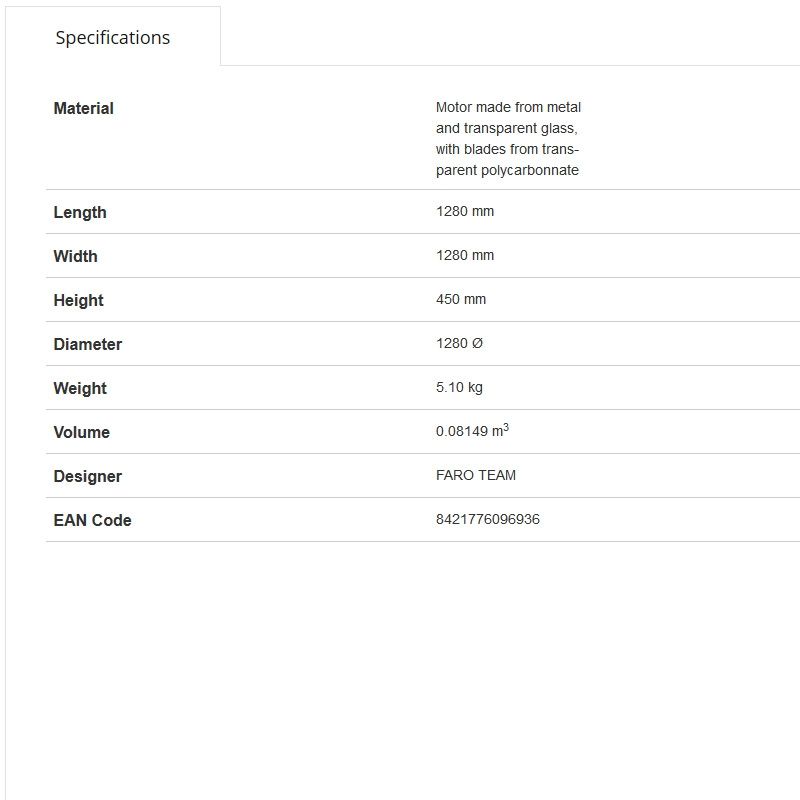 Materiale | motor din metal, sticla, lame policarbonat transparent |