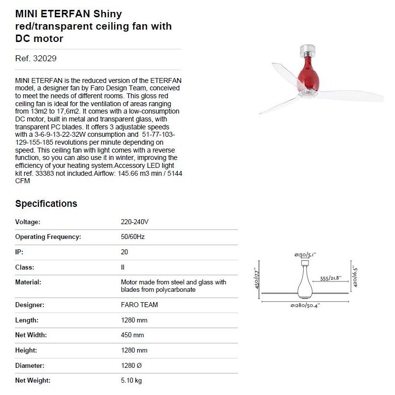 Ventilator cu telecomanda ETERFAN MINI rosu / transparent