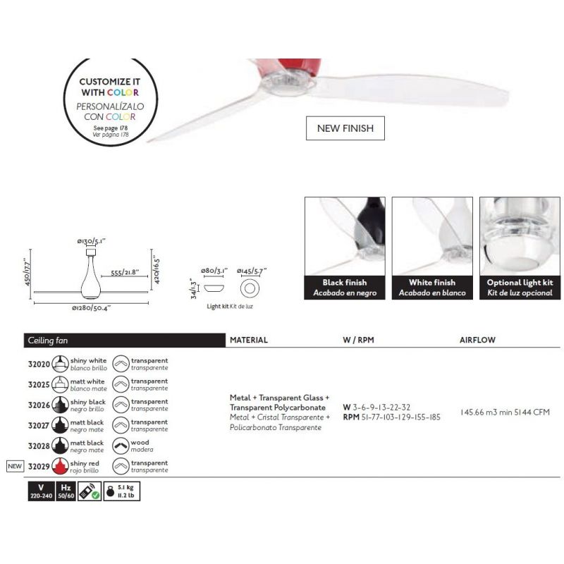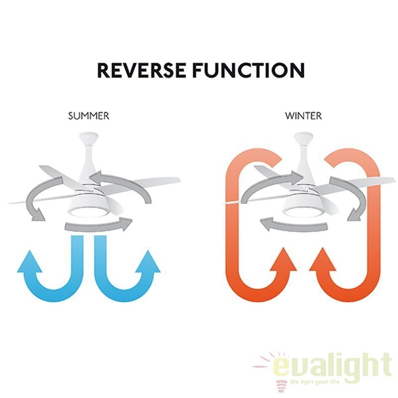 Informatii produs: | lustra cu ventilator si telecomanda, cu functie reversibila iarna-vara, 6 trepte de viteza reglabile 3-6-9-13-22-32 Watt si 51-77-103-129-155-185 rpm. |