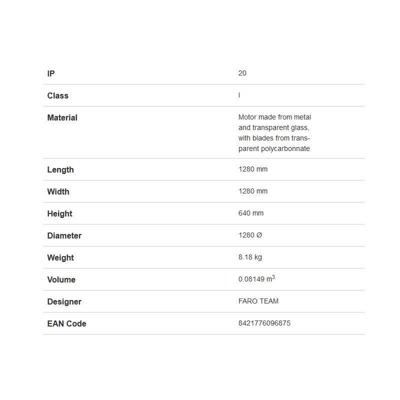 Materiale | motor din metal, sticla, lame din policarbonat |