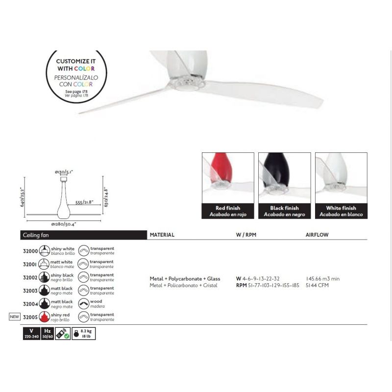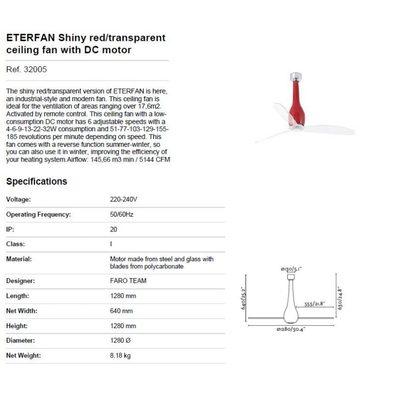 Ventilator cu telecomanda ETERFAN rosu / transparent
