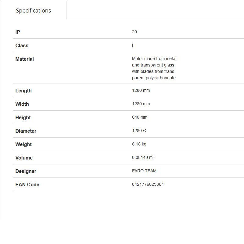 Materiale | motor din metal, sticla, lame din policarbonat transparent |