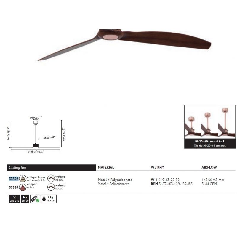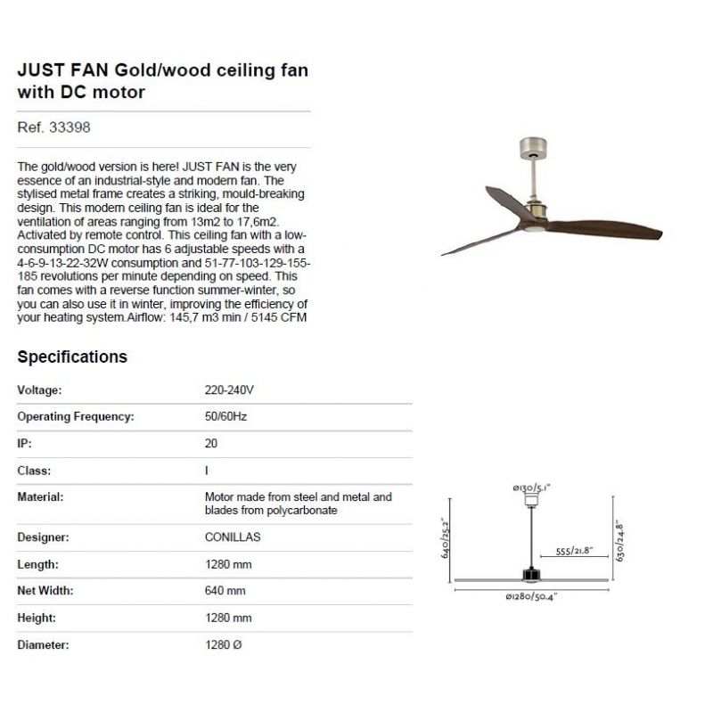 Ventilator cu telecomanda JUST alama antique/ nuc