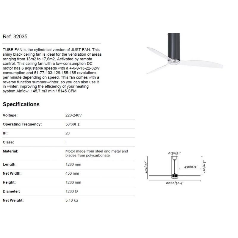Ventilator cu telecomanda Tube negru lucios / transparent