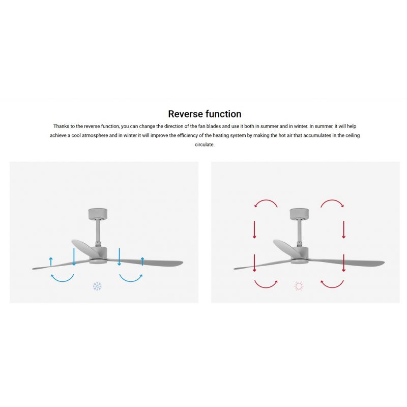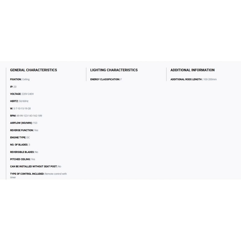 Informatii produs: | ventilator cu telecomanda, cu functie reversibila iarna-vara, 6 trepte de viteza reglabile 5-7-10-15-19-28Watt si 67-99-123-143-162-189rpm, activat prin telecomand? inclus? |