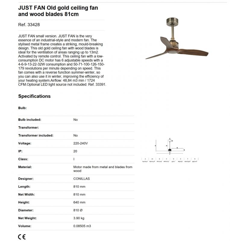 Ventilator de tavan cu telecomanda design modern JUST FAN alama antic / lemn nuc