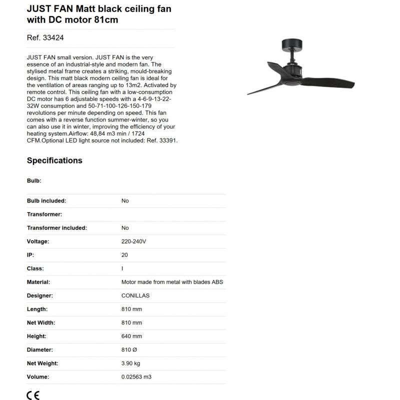 Descriere | motor din metal finisaj negru mat, lame din policarbonat nuanta negru mat, (optional kit iluminat LED ref. 33391 exclus din pret) |