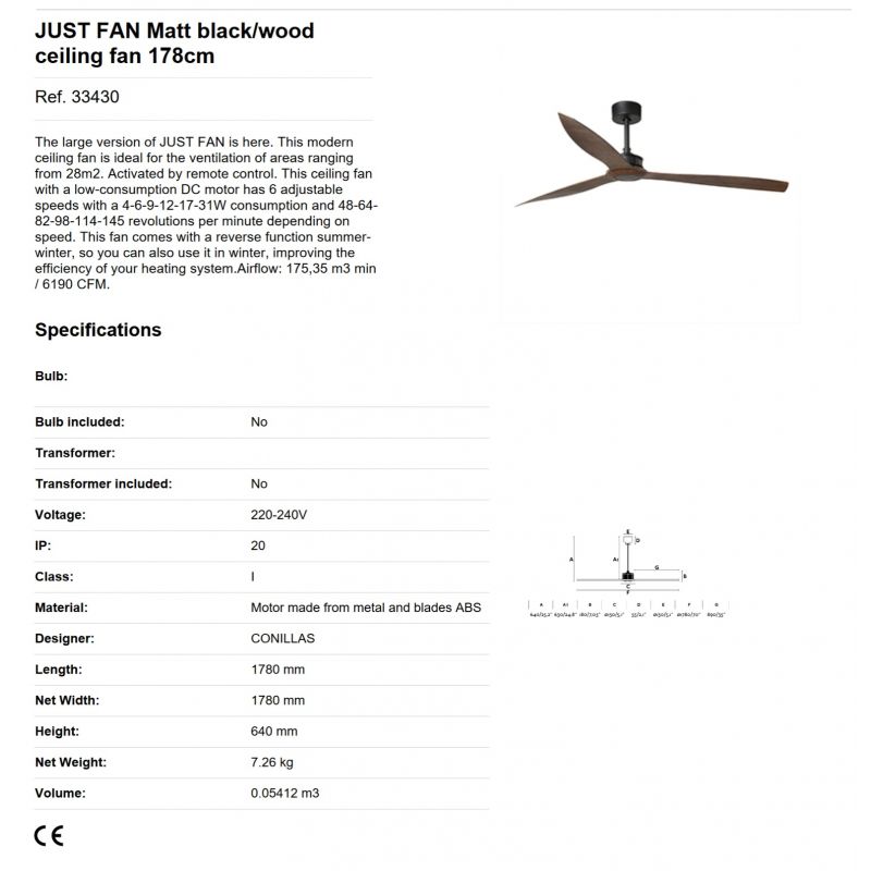 Ventilator de tavan cu telecomanda design modern JUSTFAN lemn/negru