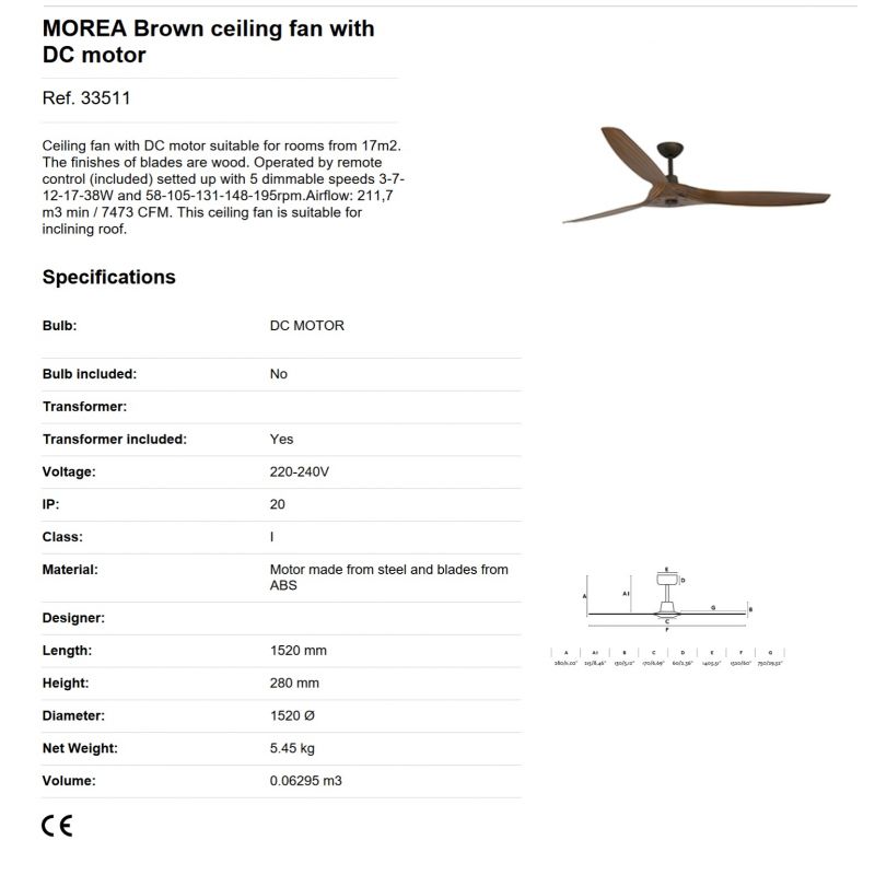 Ventilator de tavan cu telecomanda design modern MOREA maro/ lemn nuc