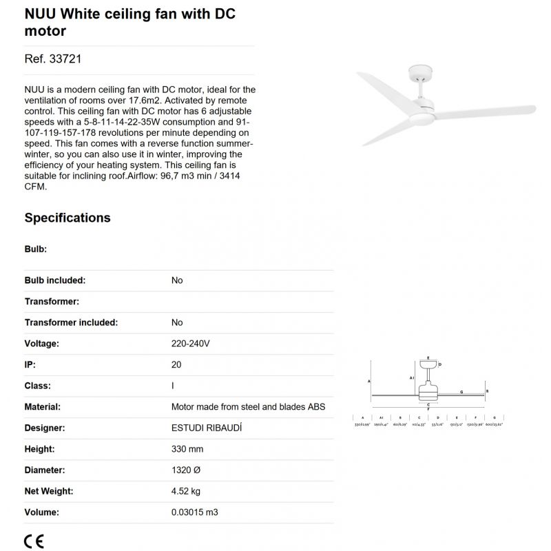 Ventilator de tavan cu telecomanda design modern NUU alb