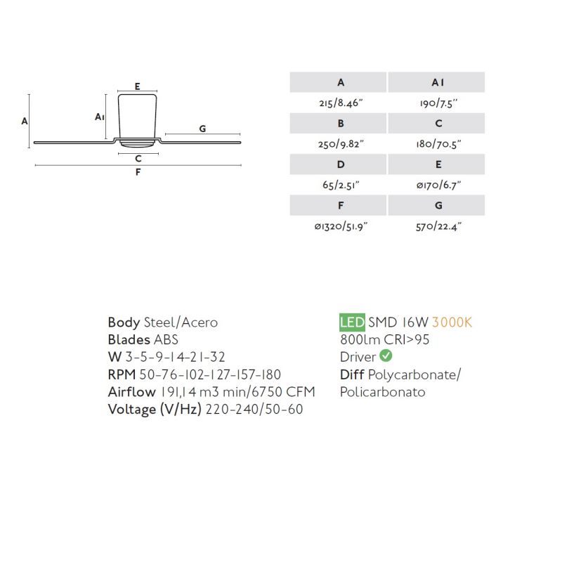Descriere | motor din otel finisaj alb, lame din ABS în nuanta alba, dif. policarbonat (optional kit iluminat LED ref. 33471K exclus din pret) |
