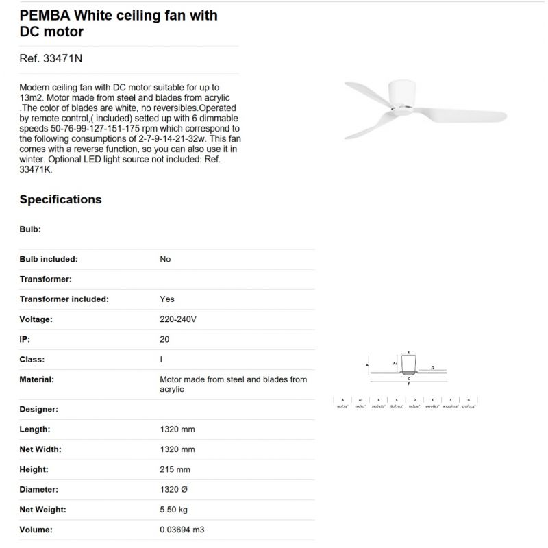 Ventilator de tavan cu telecomanda design modern PEMBA alb
