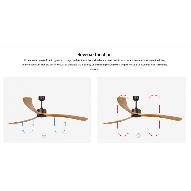Informatii produs: | Ventilator cu telecomanda, cu functie reversibila iarna-vara, 3 trepte de viteza reglabile 13.4-17-20.7-35.7-54.5Watt si 79-86-93-110-126rpm, activat prin telecomand? inclus? |