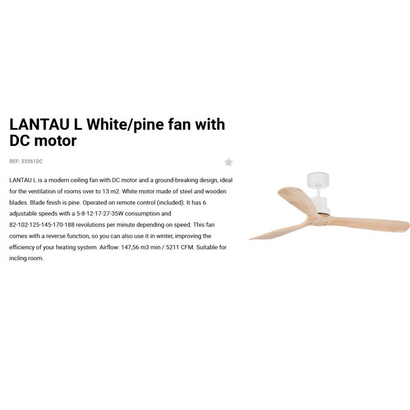 Ventilator de tavan cu telecomanda LANTAU L DC alb/pin