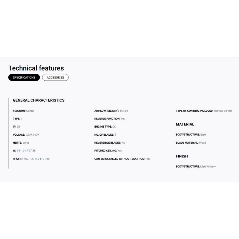 Informatii produs: | ventilator cu telecomanda, cu functie reversibila iarna-vara, 6 trepte de viteza reglabile 5-8-12-17-27-35Watt si 82-102-125-145-170-188rpm, activat prin telecomand? inclus? |
