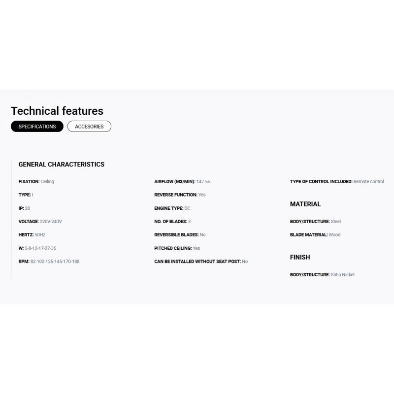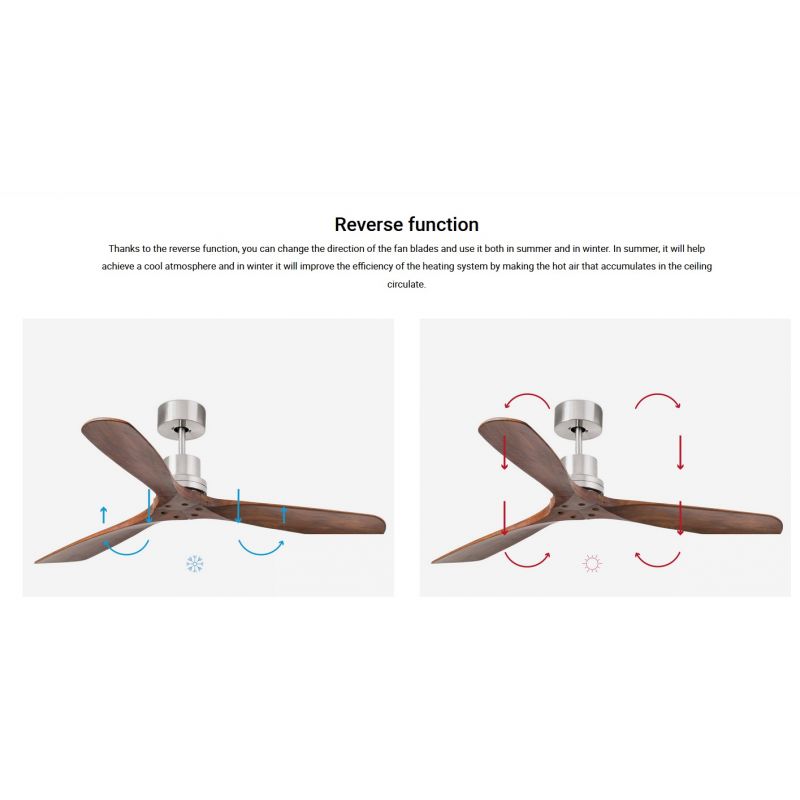 Informatii produs: | ventilator de tavan cu functie reversibila iarna-vara, actionat prin telecomanda (inclusa) cu 6 trepte de viteza reglabile 5-8-12-17-27-35Watt si 82-102-125-145-170-188rpm |