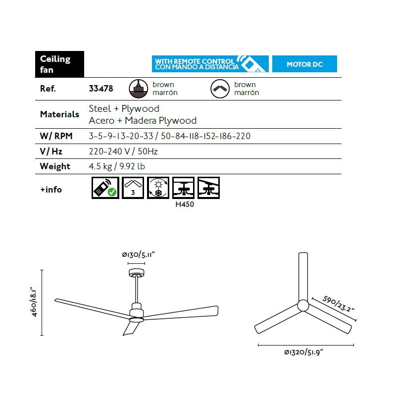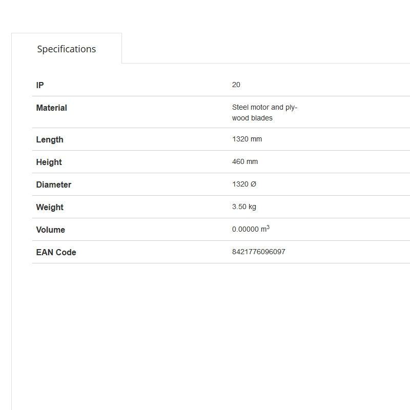 Informatii produs: | operat de telecomanda, care se poate seta cele 6 viteze reglabile de 50-87-125-162-199-237 rpm si cu consum de 4-6-10-16-24-37W, Airflow:222.41 m3 min/7851 CFM, functie reversibila iarna-vara |