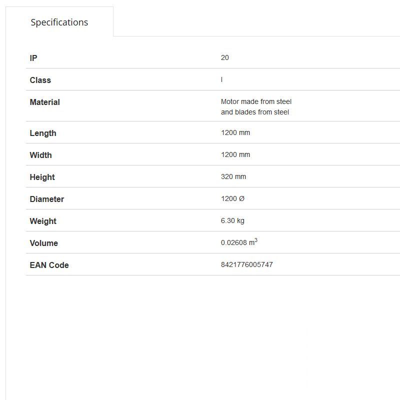 Informatii produs: | ventilator cu 3 trepte de viteza reglabile 16/26,4/48 Watt si 150/225/322 rpm, operat cu comutator de perete inclus, functie reversibila iarna-vara. |