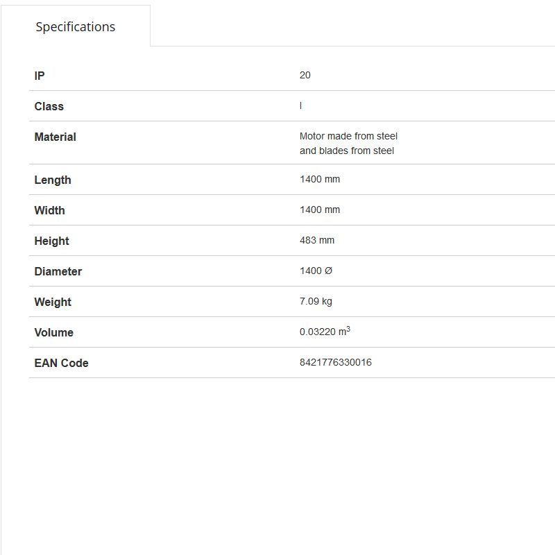 Informatii produs: | ventilator cu 5 trepte de viteza reglabile 15,5/20,5/26/32,2/47,6Watt si 113/142/173/203/206 rpm, operat cu comutator de perete inclus. |