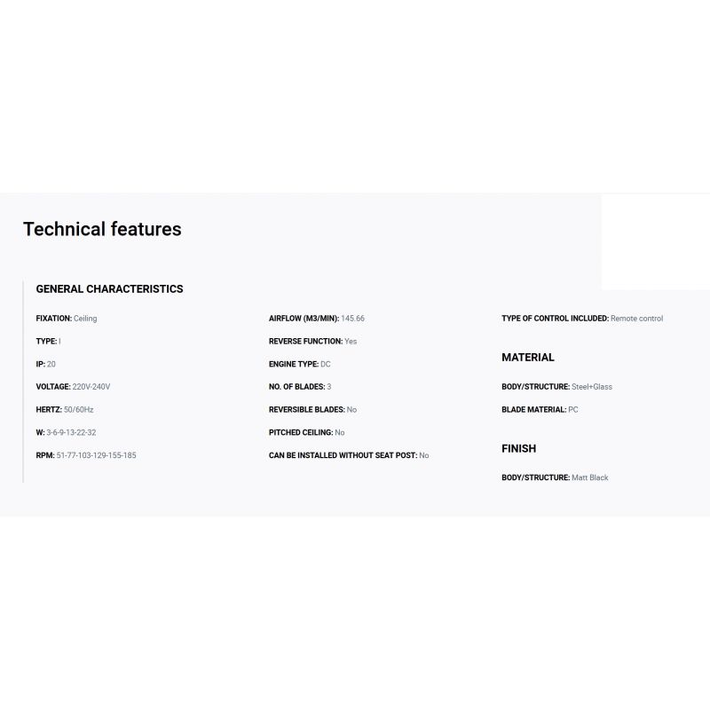 Informatii produs: | operat de telecomanda, care se poate seta cele 6 viteze reglabile de 51-77-103-129-155-185 rpm si cu consum de 3-6-9-13-22-32W, Airflow: 145,7 m3 min / 5145 CFM, dotat cu functie reversibila iarna-vara |