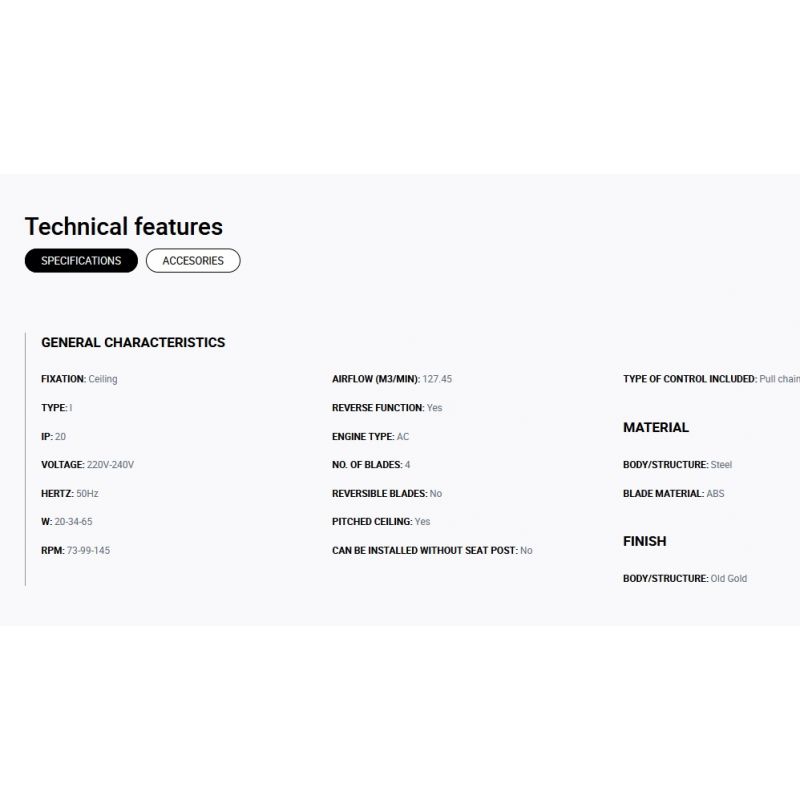 Informatii produs: | ventilator de tavan cu functie reversibila iarna-vara, actionat prin lant de trac?iune cu 3 trepte de viteza reglabile 20-34-65Watt si 73-99-145rpm |