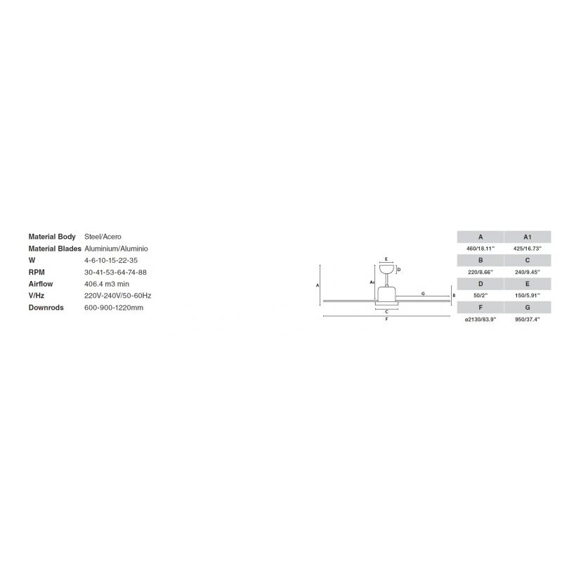 Materiale | motor din otel, lame din aluminiu finisaj alb |